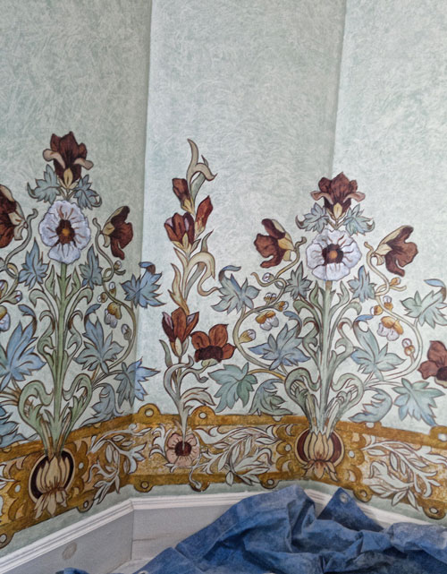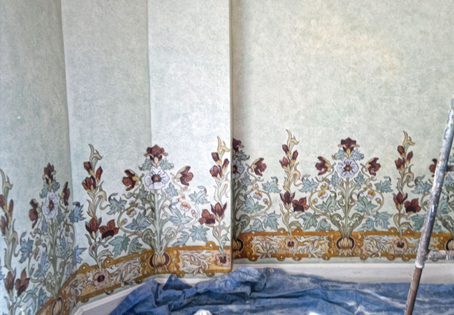 ...y sobre este, una zócalo pintado al estilo 'Art Nouveau' con pinturas de oleos