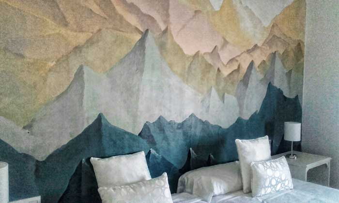 Esta Pintura Mural se hizo para recibir un gran cuadro con esta misma textura y color